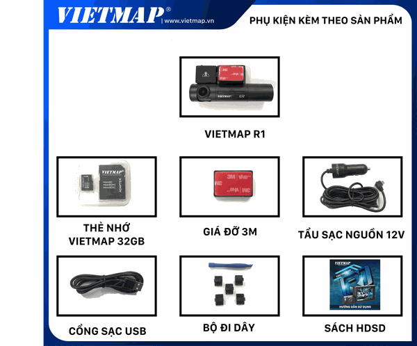 VIETMAP R1 trang bị công nghệ truyền dữ liệu thông qua kết nối WIFI không dây, giúp việc xem lại, lưu trữ, chia sẻ video lên mạng xã hội dễ dàng và nhanh chóng.